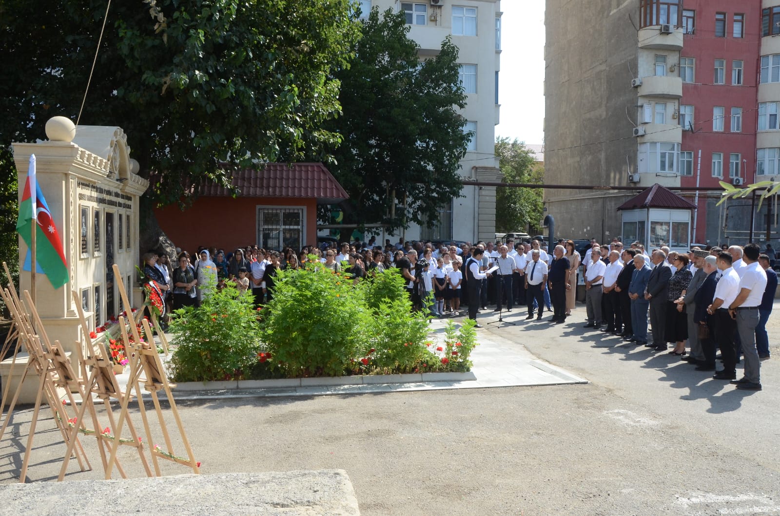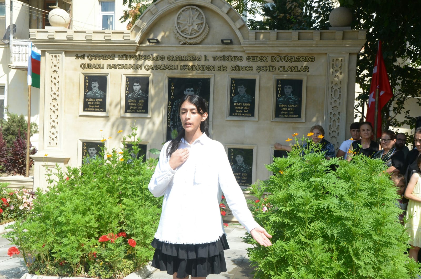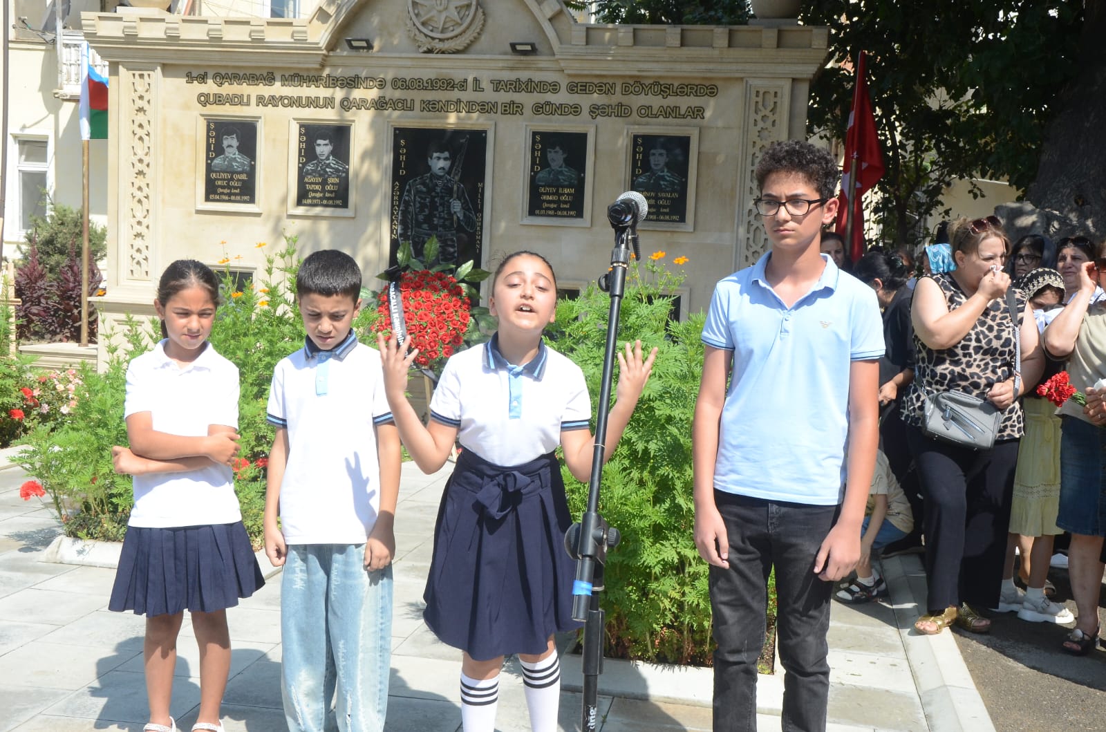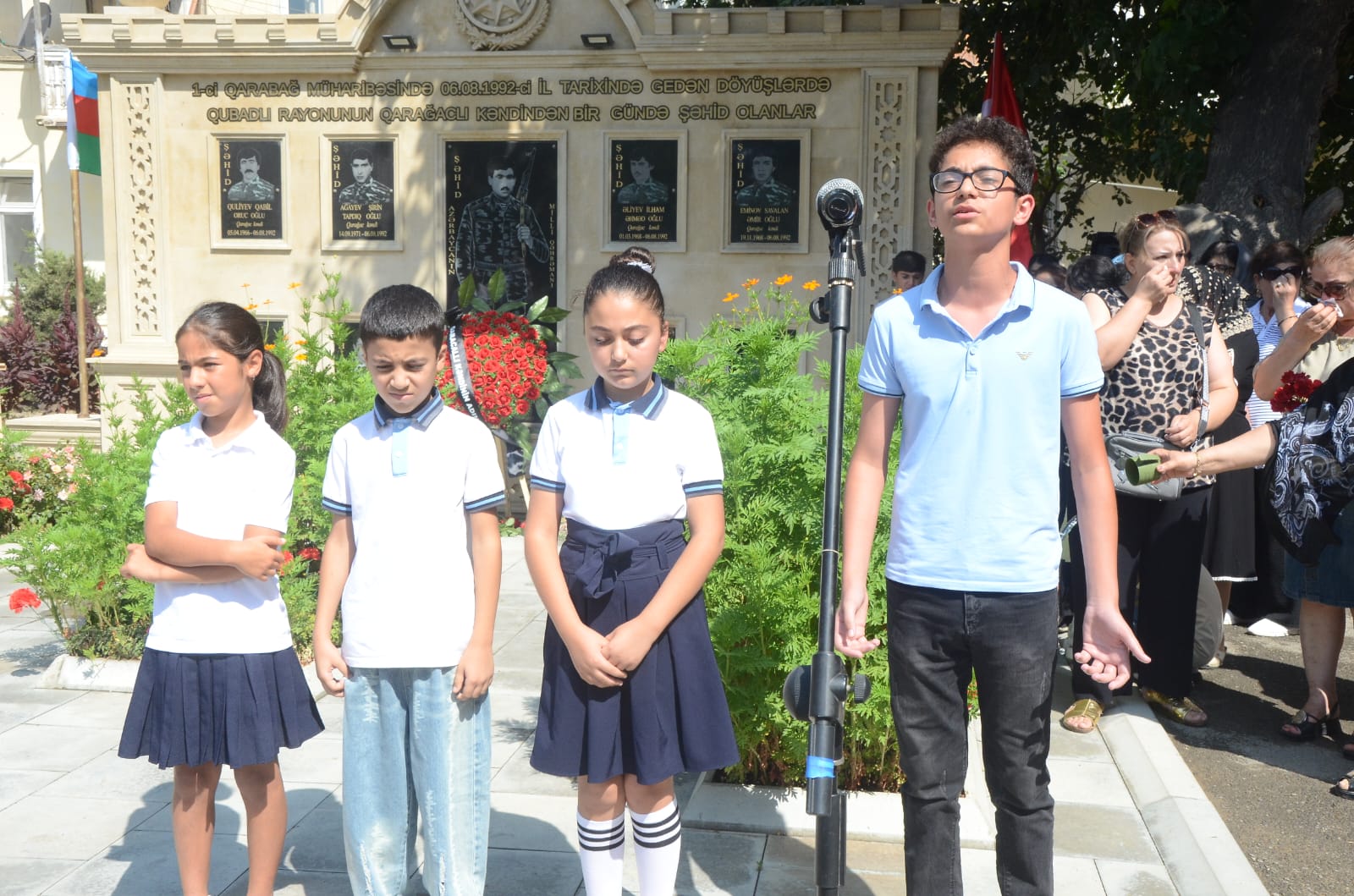 Əvvəlcə torpaqlarımızın bütövlüyü uğrunda canından keçmiş vətən oğullarının əziz xatirəsi bir dəqiqəlik sükutla yad edildi. Xatirə baralyefinin qarşısına əklil və gül dəstələri qoyuldu, ruhlarına dualar oxundu. Vətənpərvərlik mövzusunda və şəhidlərimizin xatirəsinə həsr olunmuş şeirlər səsləndirildi.