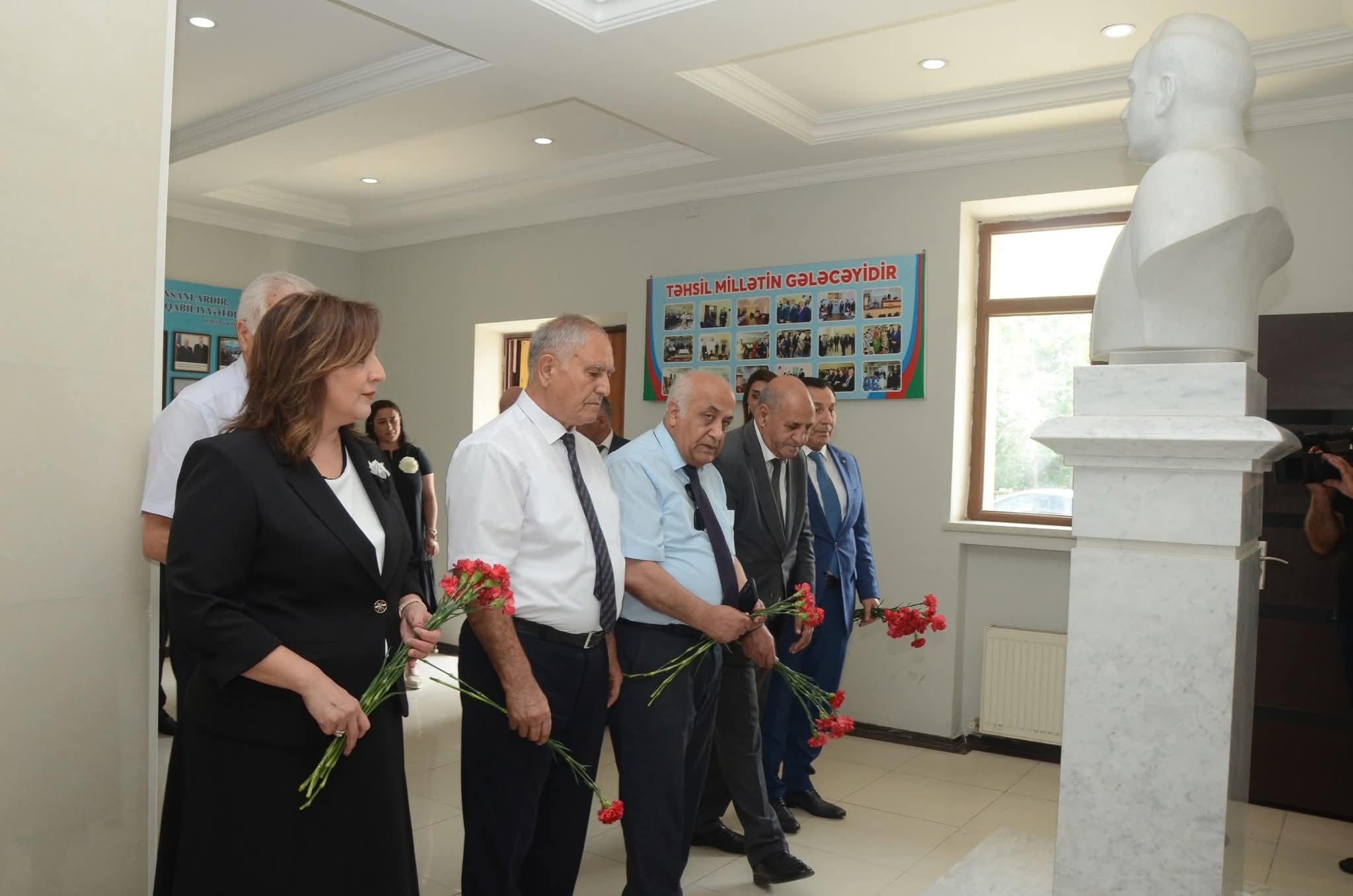 Tədbirdə Ümummilli lider Heydər Əliyevin büstü önünə gül dəstələri qoyuldu.Ulu Öndər Heydər Əliyevin və Azərbaycanın ərazi bütövlüyü uğrunda canlarını qurban vermiş şəhidlərimizin ruhları bir dəqiqəlik sükutla yad edildi.
